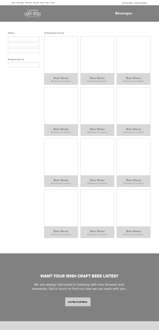 Every website we build is created with user interaction at the very heart of the design. For Ireland Craft Beers we set up clear goals for both potential stockists and suppliers, then structured the content to help achieve these. The use of wireframes allows us to focus on the users journey without the design becoming a distraction.